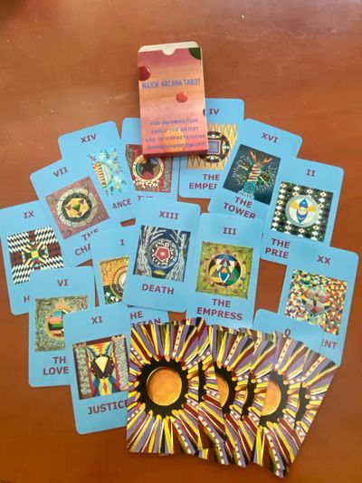 They were kind enough to offer me a place to show my Tarot paintings, a first opportunity to share this piece of myself with the community. Our relationship has grown into deep friendship, shared spiritual aspirations, and , now, this project of my cards. Therefore, I will be selling the cards through them, sharing in the profits and the joy of our collaboration.
